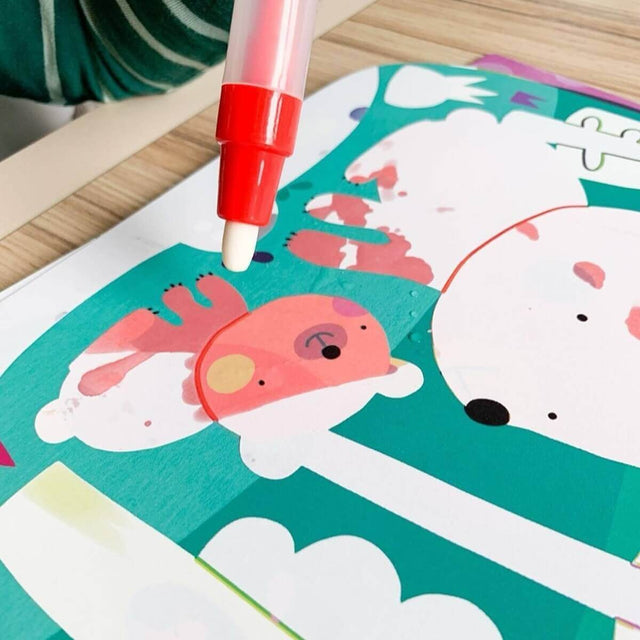 Magical coloring for toddlers: Fill the magic crayon with water and color in the white areas to reveal what's hidden underneath. Suddenly, patterns appear and the colors change—it's magic!