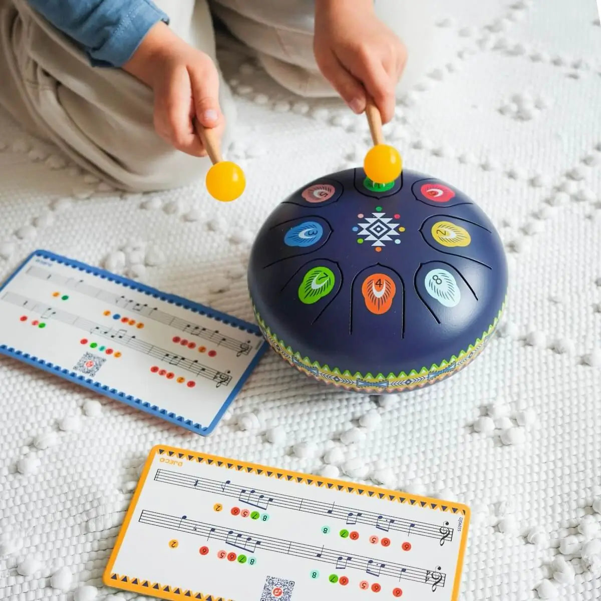 Very intuitive and easy to play, the child taps the tabs with the sticks: through its vibrations, the instrument emits a soft and relaxing sound. Perfect for creating or reproducing soothing melodies!