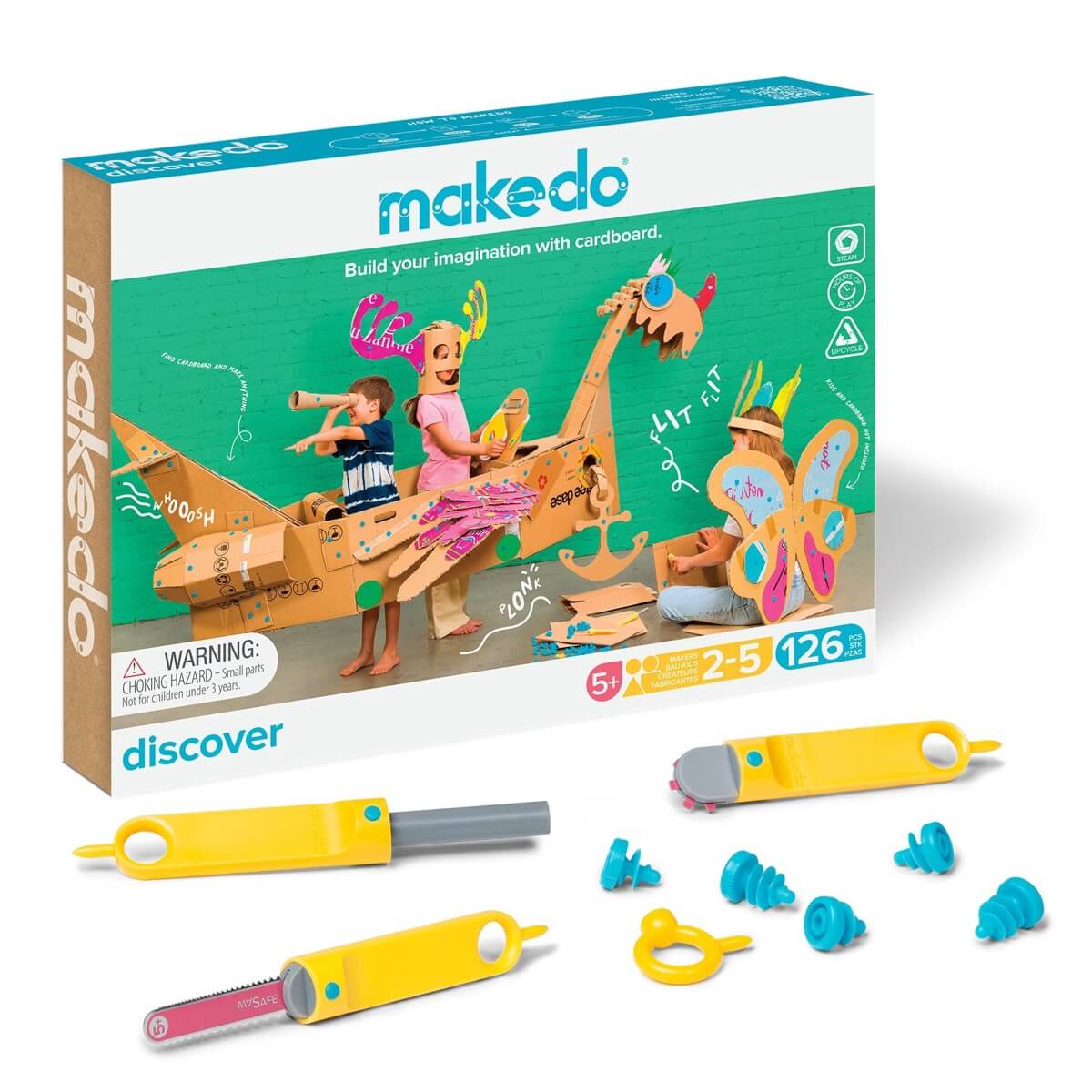 - The 126-piece Makedo Discover kit is perfect for 2 to 5 makers.