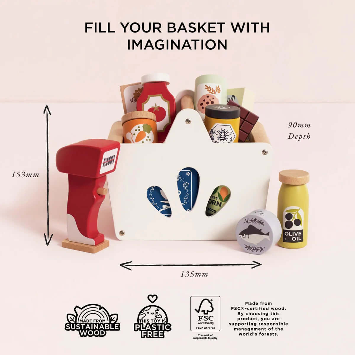 Time to go shopping! An imaginative world of play awaits with this wooden grocery set.