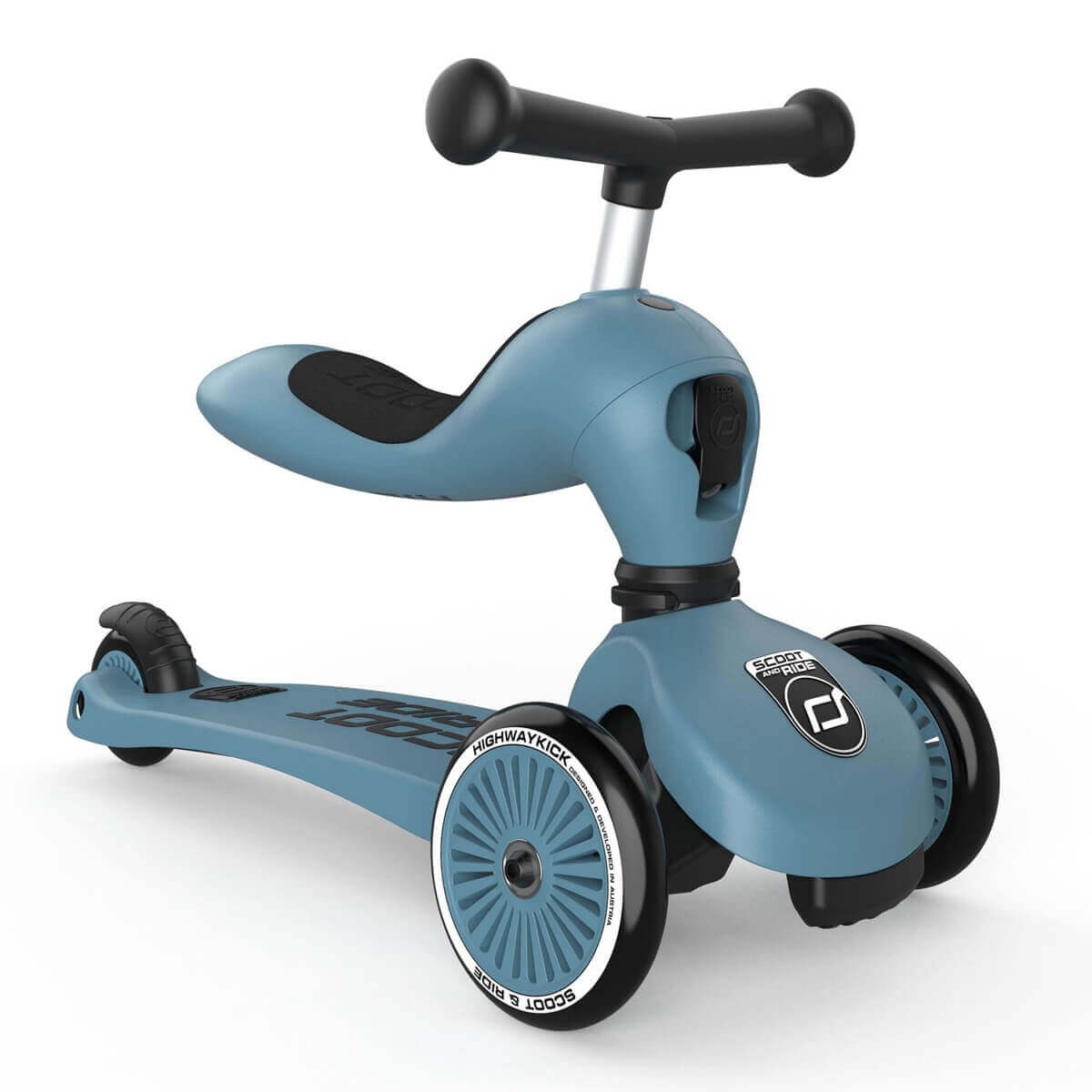 The Scoot & Ride Highway Kick 1 is a 2-in-1 scooter that offers a seat for its smallest riders.