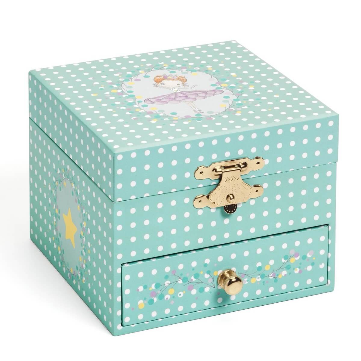 Délicate Ballerine est une boîte à musique joliment illustrée avec un tiroir pour ranger ses bijoux et secrets.