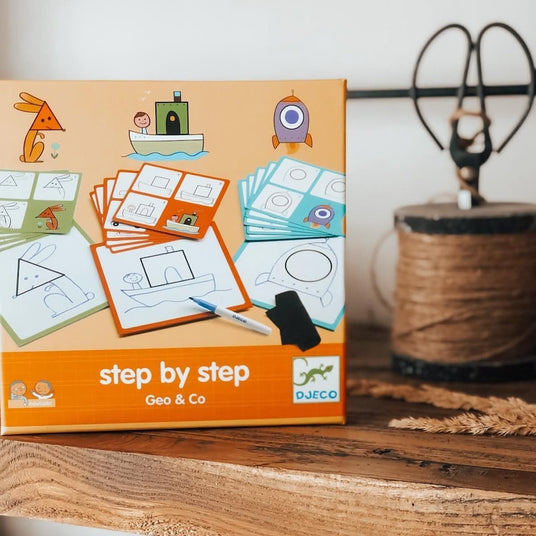 Les cartes modèles montrent à l'enfant les différentes étapes du dessin. Grâce au crayon effaçable, il peut recommencer autant de fois qu'il le souhaite.