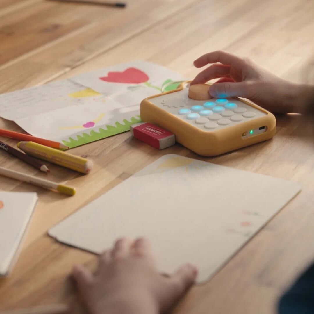 Oui, c’est une boîte à histoires… mais pas comme les autres! Grâce à son pad lumineux à 16 touches et à la détection des mouvements, la Fabli invite les enfants à jouer, choisir, bouger et interagir — bien au-delà d’un simple bouton ou accessoire à insérer.