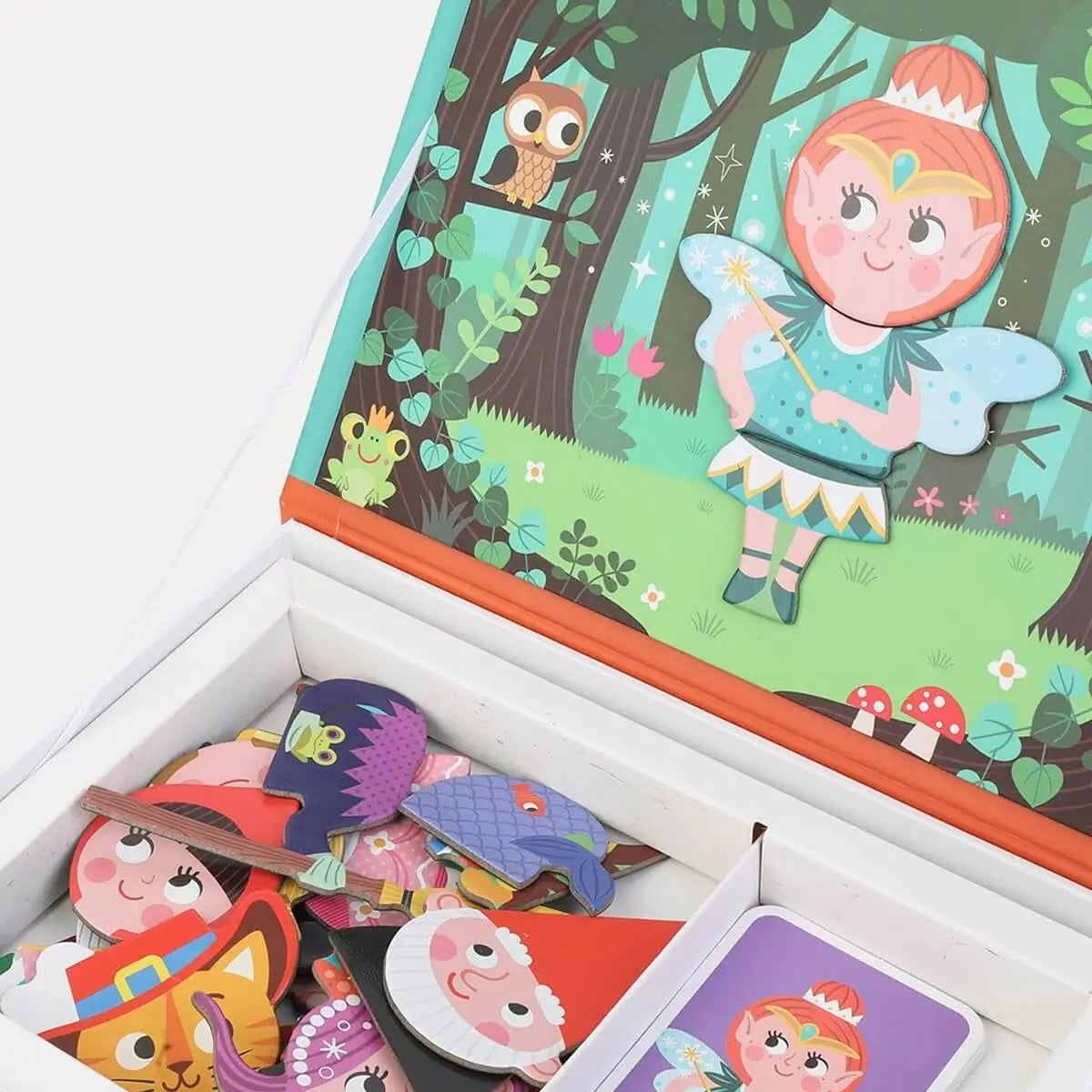 Ce jeu magnétique invite les enfants dès 3 ans à créer des personnages de contes classiques avec 30 morceaux et 10 cartes modèles. Simple et ludique, il stimule leur imagination sur une scène magnétique.