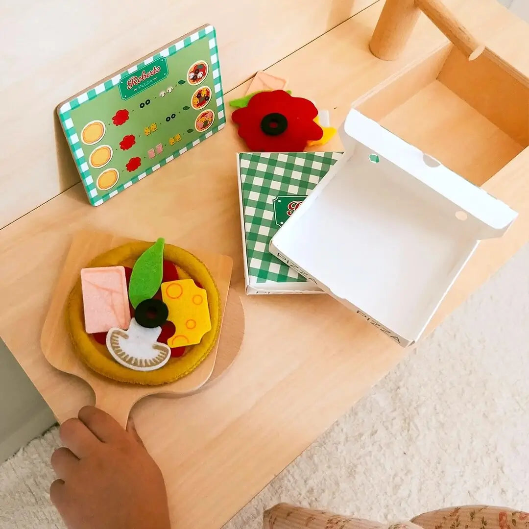 - Inclus 2 pâtes à pizza en tissu suédine et 10 ingrédients en feutrine